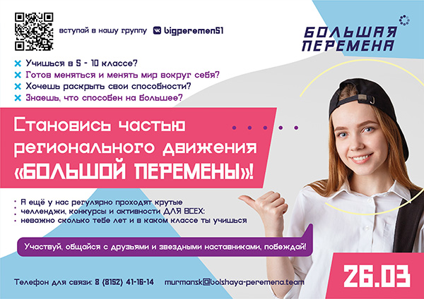 А еще ты можешь присоединиться к команде «Большая перемена» в своем регионе и узнать все новости первым: https://vk.com/bpcontest51