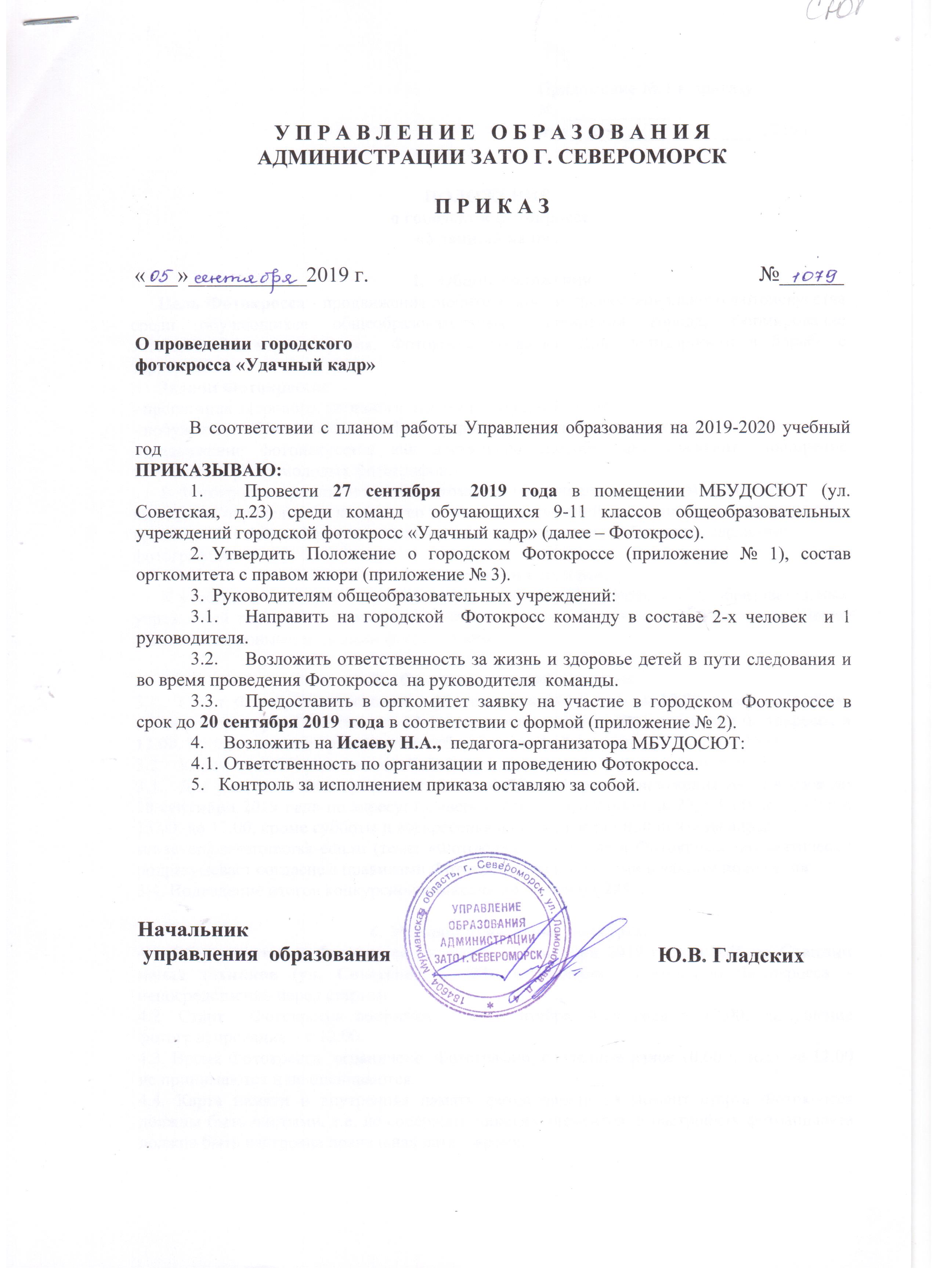 27 сентября 2019 года среди команд обучающихся 9-11 классов общеобразовательных учреждений пройдёт фотокросс "Удачный кадр".