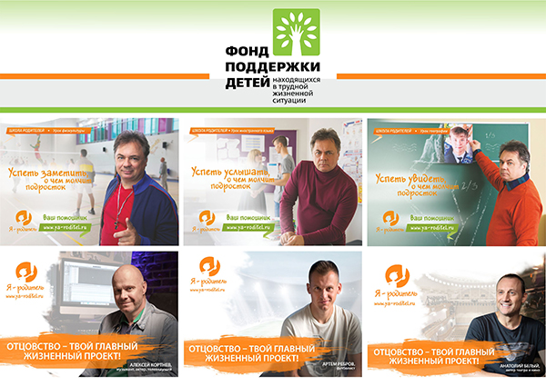 В рамках информационной кампании Фондом созданы рекламно-информационные материалы с участием популярных артистов, музыкантов, спортсменов по темам: «ответственное отцовство» ("Отцовство–твой главный жизненный проект"), «подростковая агрессия» ("Успей заметить о чем молчит подросток"), «пропаганда ценностей семьи, в т.ч. многодетной» ("Матрешки", "Сказки", "Приснилось"), «пропаганда ценностей ответственного родительства, недопустимости жестокого обращения с детьми» ("Ваза", "Диалоги", "Угол"), «пропаганда ценностей семейного устройства детей-сирот» ("Объявление", "Супергерои", "Аисты"), «пропаганда ценностей ответственного родительства» ("Что? Где? Когда?").